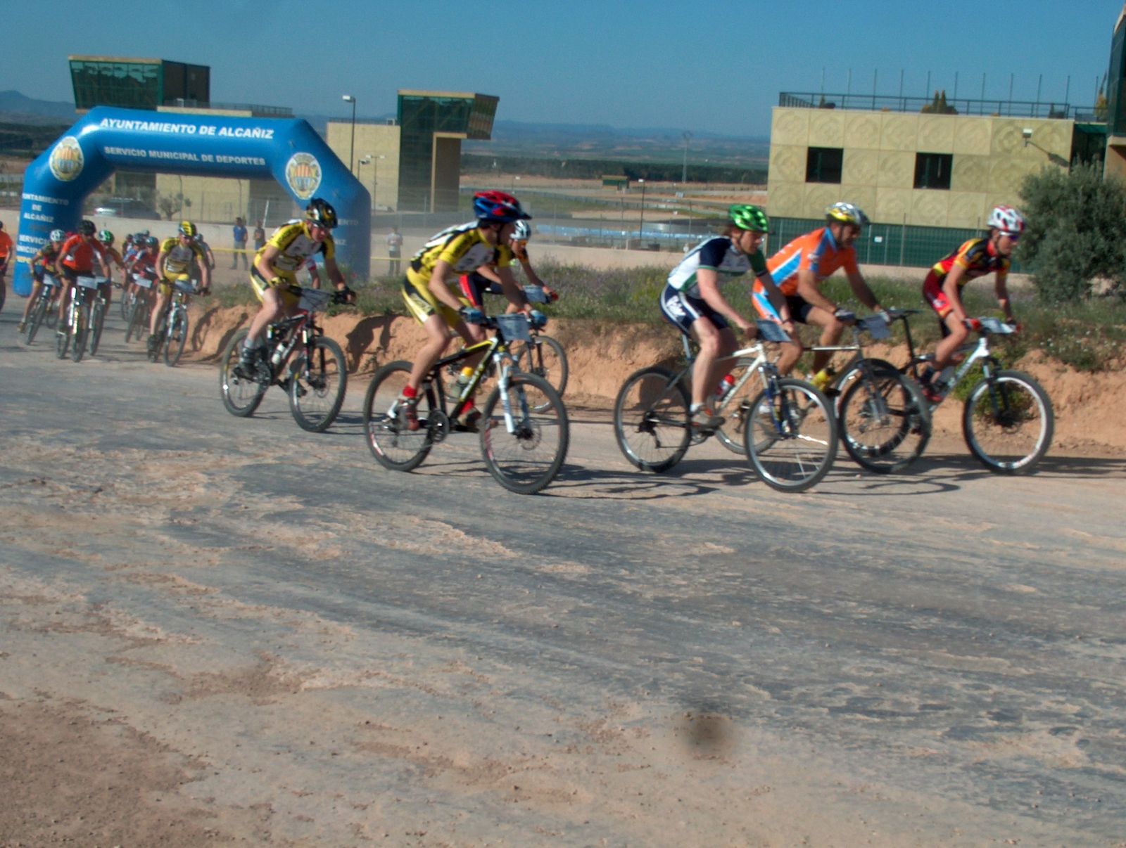 Al día siguiente de la cronoescalada parte del equipo nos fuimos a Alcañiz a correr la prueba del Trofeo Sabeco de BTT, celebrada en la Ciudad del Motor. Llego allí de los primeros y doy unas vueltas al circuito para ver como es. No tenía dificultad y había un salto bueno. Así como va llegando la gente, el día se va calentando y nos vamos encontrando con más conocidos. Nosotros teníamos que dar dos vueltas al circuito que tenía unos 6km